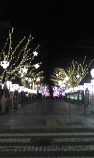 写真は、年末年始に帰省したとき、静岡の中心部で撮ったものです。静岡にも東京程ではありませんが、イルミネーションで飾られた通りはあります。