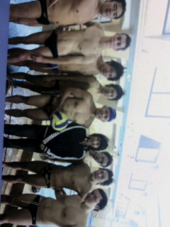 写真は今日の練習後に東大の水球部員と食事に行ったときの様子です。
