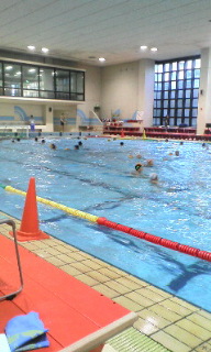 中学生のチームには、小学生のころから水球をやっている子も多いのか、うまい子がたくさんいました。男子はシュートが早いし、体の位置も高いく、とても中学生には見えないプレーをしてました。