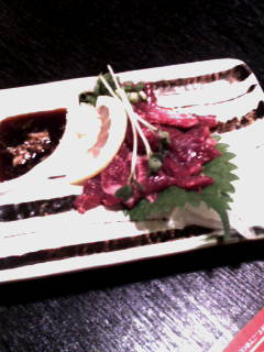 写真は熊本名物の馬刺です。牛とは違った濃厚な味で美味でした。